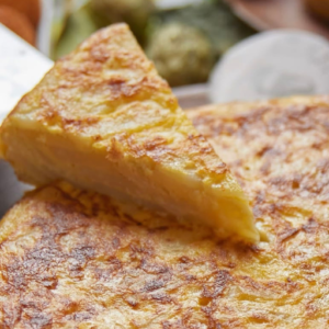 Es pura tradición: Papas suaves y doradas, mezcladas con huevo batido y un toque de cebolla caramelizada, cocinada lentamente hasta lograr una textura perfecta por dentro y ligeramente dorada por fuera. Cálida y llena de sabor casero.